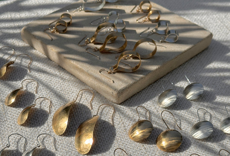 We specialize in creating unique everyday jewelry out of high quality 14k gold fill, sterling silver & brass. All ear wires are handmade with lead, nickel free & hypoallergenic 14k gold or sterling silver wire.