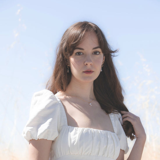 For the beautiful bride, bridesmaid or anyone who loves pearls. A simple & stunning with a single white + champagne pearl bead, strung on either 14k gold filled or sterling silver dainty chain. The perfect addition to compliment any bridal dress + wear after the celebration all year long. Matching Marces Hoops or Marces Set are available too.