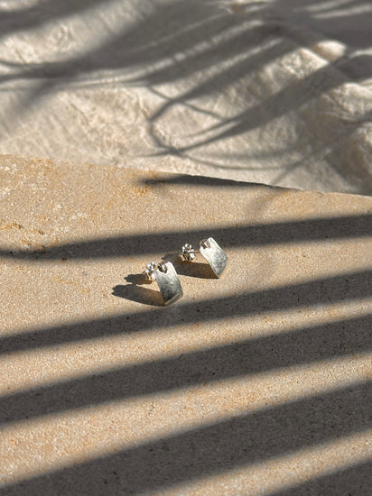 Alba Minis are hand-crafted rectangular studs that blend minimalist design with vintage style. Available in solid brass, sterling silver, or 14k gold-filled, each pair is individually cut, hammered, and wrapped to create a refined finish. Their compact size makes them ideal for stacking and layering, allowing you to build a personalized look. Perfect for those who love elegance and minimalistic jewelry