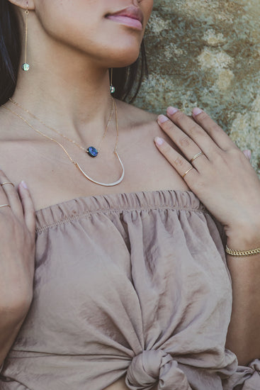 Stunning in every way, the new Baize is the perfect mix of elegance & simplicity. Handmade entirely of 14k gold fill, wear it all day every day in ocean to the desert, it’s the perfect understated statement piece. Hand wrapped from start to finish on dainty 14k gold fill chain, to bring out the pendant’s hammered beauty. Layer the Baize with just about anything. Available in multiple chain lengths. Medium pendant measures 1 1/2" by 1 1/8". Large pendant measures approximately 2" by 1 1/2".