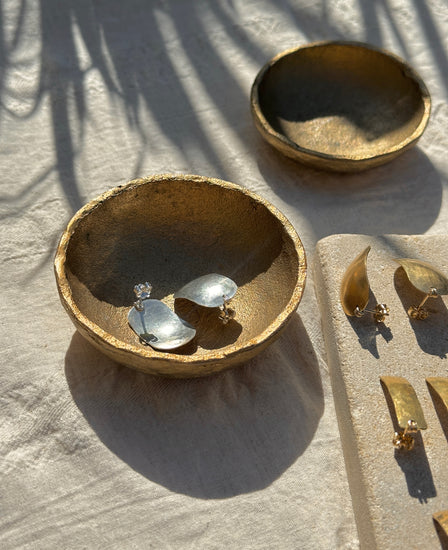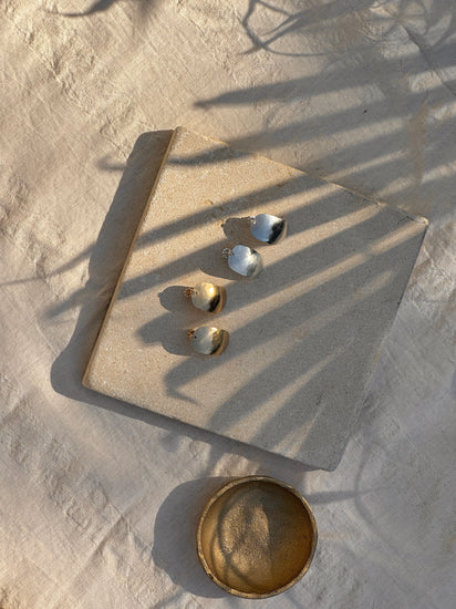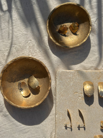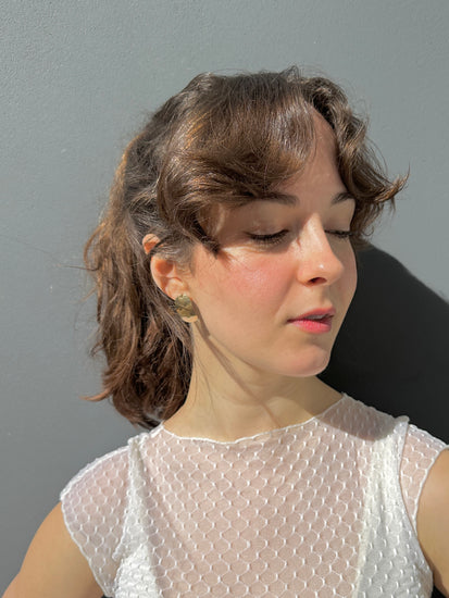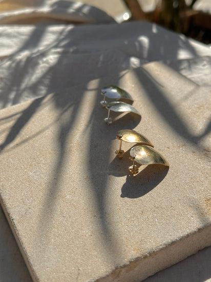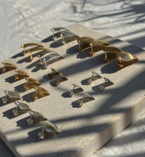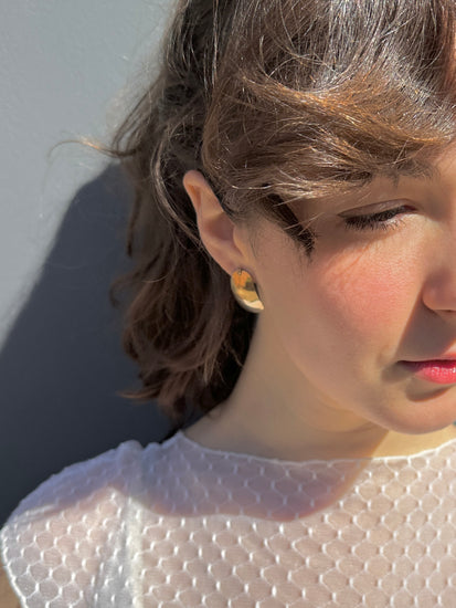 Camilla Studs capture the bold aesthetic of 1980s design with authentic vintage appeal. Handcrafted in Santa Cruz, these stud earrings feature classic geometric forms and a smooth hammered finish like the characteristic of the era. Each pair is individually made + perfect for adding retro sophistication to contemporary wardrobes, these studs deliver timeless style