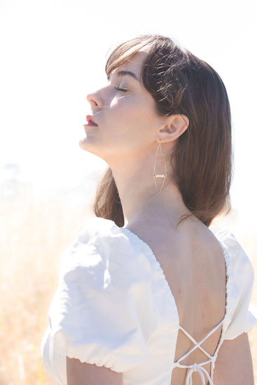 Whimsical statement bridal earrings with moonstone, in either hammered 14k gold filled or sterling silver. Pair the Capri Dangles with any wedding dress, the iridescent sparkly moonstones are sure to catch the eye. Pair with the Capri matching necklace. Earrings are lightwieght and measure approximately 3 1/8" by 3/4'.
