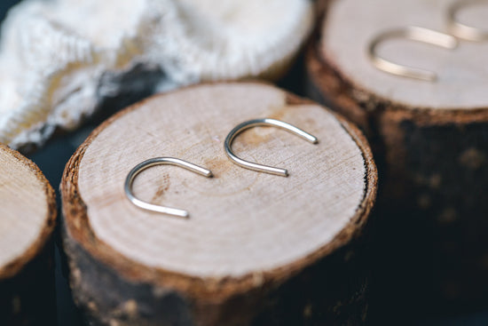 Minimalistic mini cuffs for any piercing. Great for everyday or travel. They look like little bars pointed up and mini threaders pointed down. Hand formed and lightly hammered with either 14k gold fill or sterling silver.