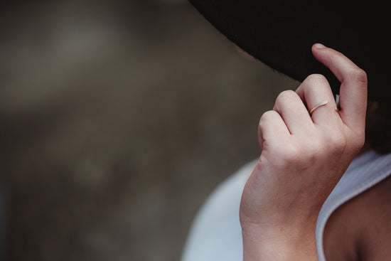 A simple, comfy, everyday ring. Hand formed, hammered and made with either 14k gold fill or sterling silver. The Curved Oslo ring comes with either a tiny hammered detail at the opening or smooth finish. A great stacking ring, or just by itself.