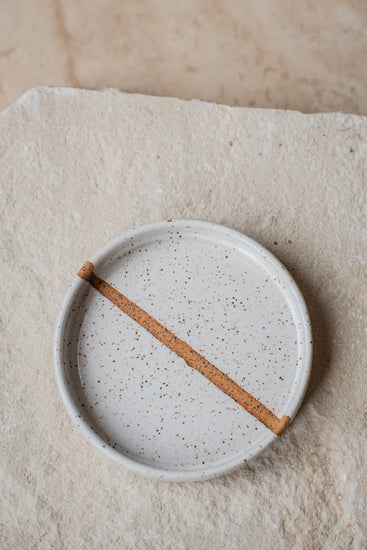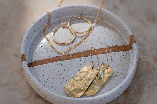 Made with intention & beauty. A lovely addition to a dresser or vanity, this jewelry tray is perfect for storing your most beloved jewelry + smaller essentials. Handmade in Santa Cruz, Ca. by a local maker, Megan, of Megan Sofia Pottery. Designed exclusively for Desert Moon. Each tray is branded with our signature desert logo. Durable & dishwasher safe.
