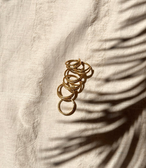 The Brass Double Ring is a versatile minimalistic two in one ring for an everyday look. Layer it with any of your rings or wear it solo. Each ring is hand formed and hammered with thick raw brass wire. For the brass lovers, keep your ring on all day every day and enjoy it's journey with your body's natural oils & temperature. To maintain it's color, remove before showering or swimming. You can purchase a cleaning cloth to shine it right back up in no time.