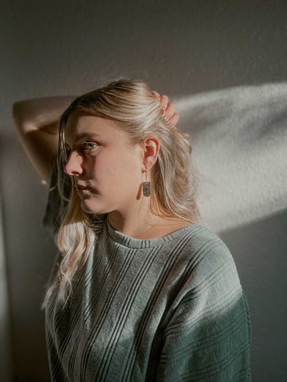 The Hana Drops are hand sawed & hammered with our signature rustic imprint, made with high quality brass and hand formed and hammered 14k gold fill ear wires. The simple bohemian drop, for the simple but, stylish lady. Light weight. Earrings measure approximately 5/8” by 2”