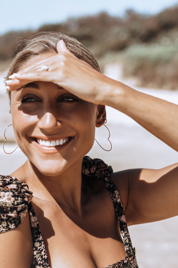 Hand shaped and hammered heart hoops made out of either 14k gold fill or sterling silver. Add a touch a flare to your hoops. The perfect grab and go earring, fun to wear year round. Large size is shown on model.