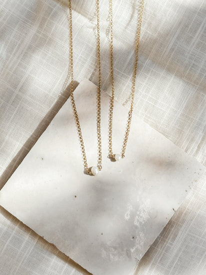 The Kalani Dainty is a simple and sweet everyday necklace, get creative layering with it or wear it alone in elegance. If you don’t have a pearl piece from our collection yet, this is the perfect starting point. Made with dainty 14k gold fill chain, and hand wrapped with a Hawaiian pearl bead. Three length sizes available.