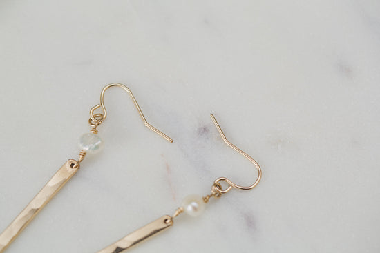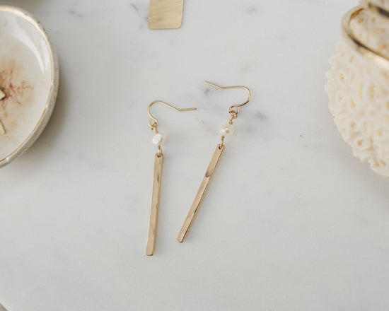 The Kona Drops are handmade with either 14k gold filled or sterling silver. Each pearl bead is hand wrapped for a beautiful finish. A perfect mix of elegance & simplicity. Named after a beautiful Hawaiian town on the Big Island where Desert Moon Design owner used to live. Lightweight. Earrings measure approximately 2 1/2” by 1/4”.