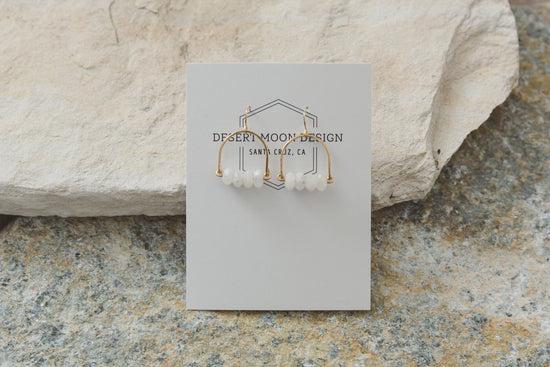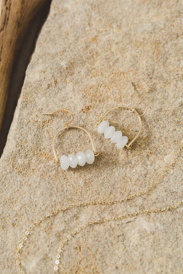 A simple and sweet earring choice. Handmade with real moonstone, capturing the rainbow hues in the sunlight. Perfect for weddings or everyday adventures. Lightweight dangles, great for mask wearing and a subtle addition to any outfit. Available to purchase the moonstone set as well. All ear wires are lead and nickel free & hypoallergenic. Earrings measure 1” by 1”.