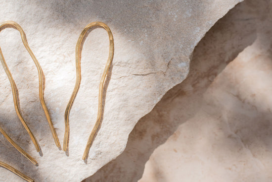 Each Noma is one of a kind, we threw out our template on these beauties. Handmade & created with organic curves & texture. The beauty in hairpins, is each time you use one, it creates a new bun, a new twist in your hair, a new look, the Noma shapes are a reflection of that.