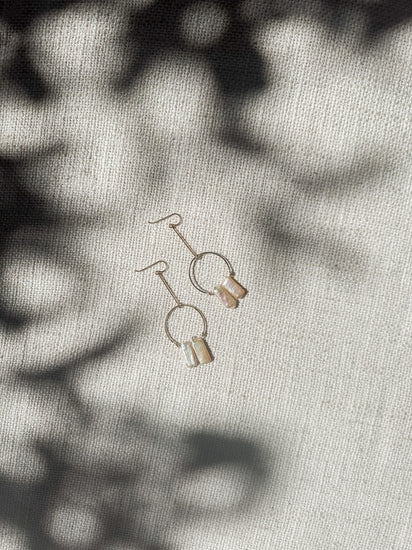 Beautiful peach pearl branches, wrapped around a hand made dome in 14k gold fill or sterling silver. The Okewas are absolutely stunning. All components are handmade with 14k gold filled and hammered with a beautiful delicate texture. A lovely choice for a special occasion, birthday, wedding, tropical trip or absolutely anything! Earrings measure approximately 2.75" long. Lightweight.