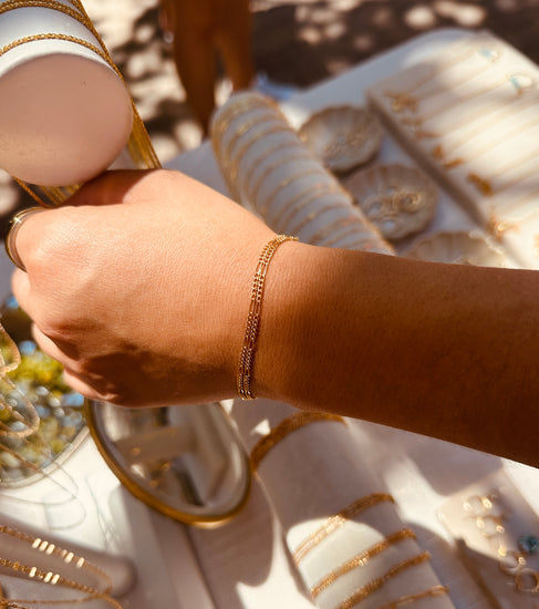 A beautiful golden 14k gold filled double chain bracelet in our classic filigree chain, just like the Ada Chain Necklace . A rich and hardy chain bracelet that goes with anything. We particularly love the chain for it's texture and true golden color. The Pasadena is named after a lovely town in California where Ali, the owner & maker of Desert Moon was once left homeless & lost in her early twenties along side her mother. They together persevered through it to new beginnings. Every time Ali wears her Pasadena Bracelet she's reminded how far she's come, & we hope as you wear yours, you feel inspiration & strengthened like she was.