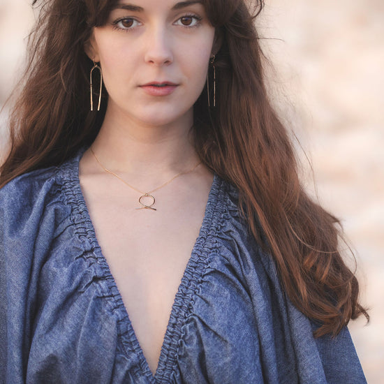 Infinity delicate hoop pendant, hammered for a beautiful texture and wrapped together for added detail. Wear the Sydnii as your everyday necklace or dress it up with your favorite spicy outfit. Available in a variety of chain lengths and in either 14k gold filled or sterling silver. Matching Sydnii earrings available too.