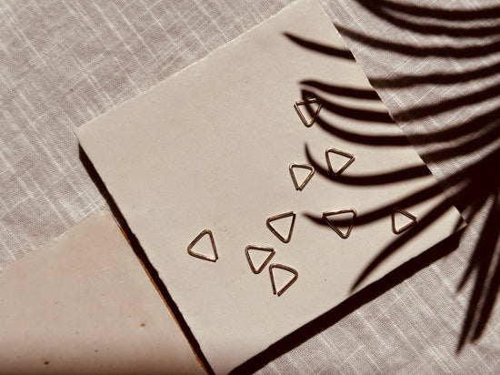 Elevate your piercing with the geometric triangular piercing bling. Handmade + hammered lightly with either 14k gold fill or sterling silver. Lead and nickel free + hypoallergenic. Made with 18 gauge wire.