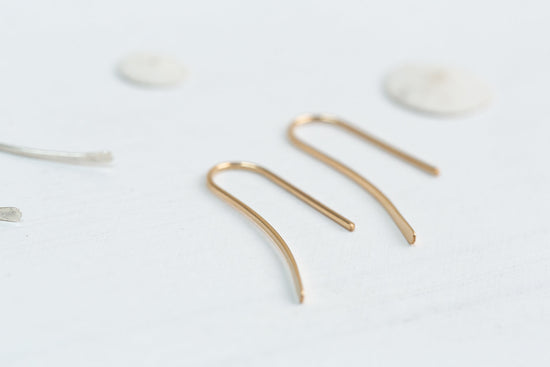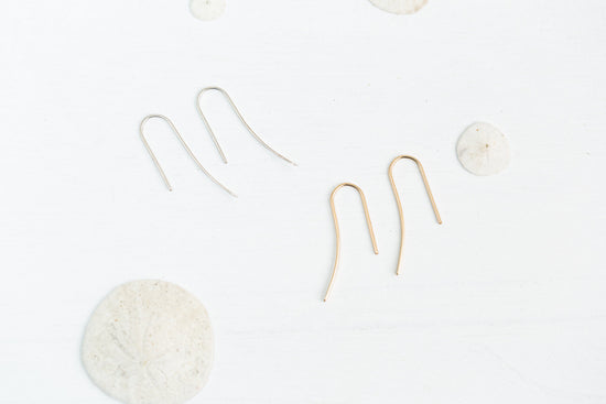 Simple, minimal, light weight and stylish, the Versa Threaders are handmade, shaped and hammered with either 14k gold fill or sterling silver. When in doubt, these are the perfect gift for just about anyone. Available as a pair or singles, you can even mix and match the metals. Threaders come with silicone backings for a secure fit.