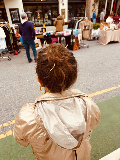 Put a little beauty in your bun with The Wavy Chopstick. Each chopstick is hand formed and hammered with 10g raw brass wire, giving each a unique curvature finish. Size small measures 3". Large size measures 6". Please note: All sticks are hand formed organically so no one stick is perfectly alike.